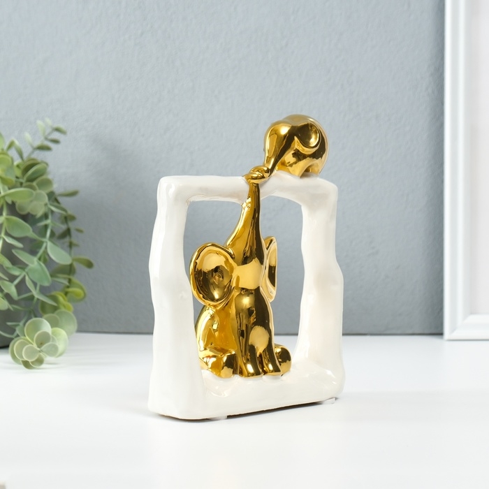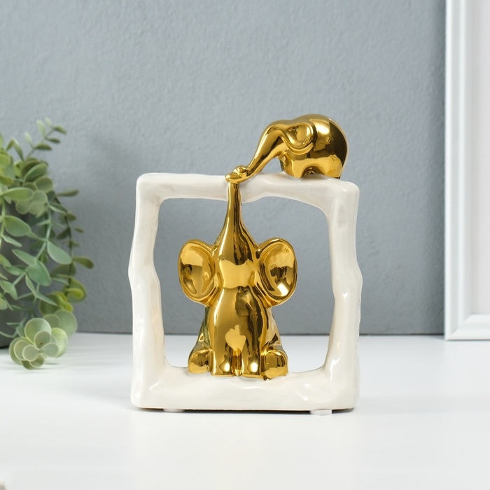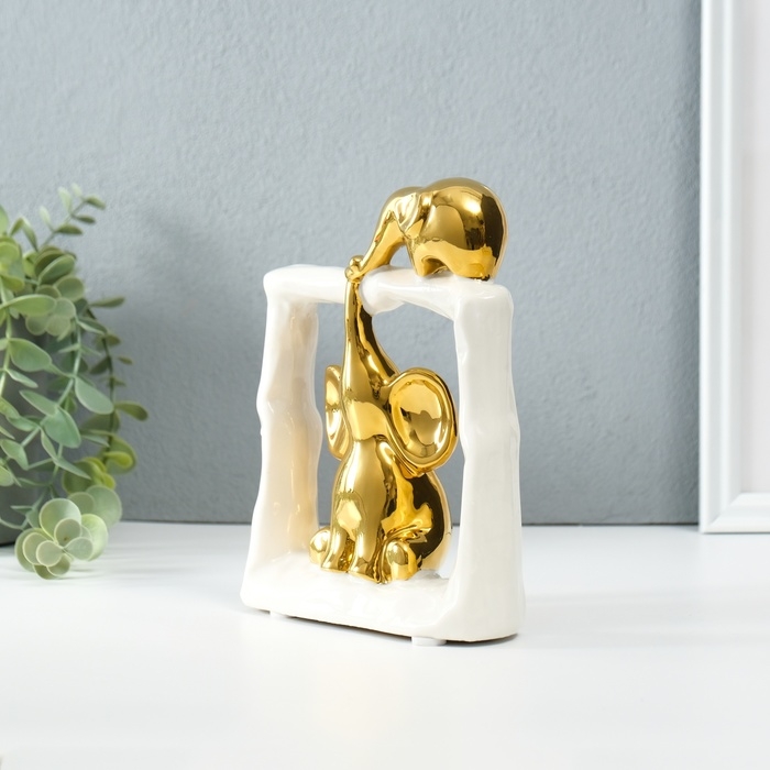 Сувенир керамика "Слонята - поддержка. Квадрат" белый с золотом 6х13,5х17,5 см