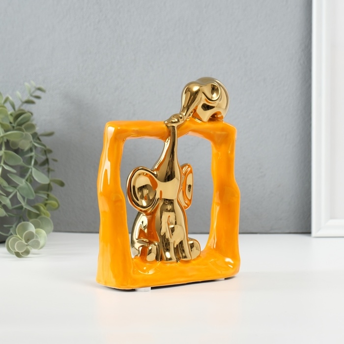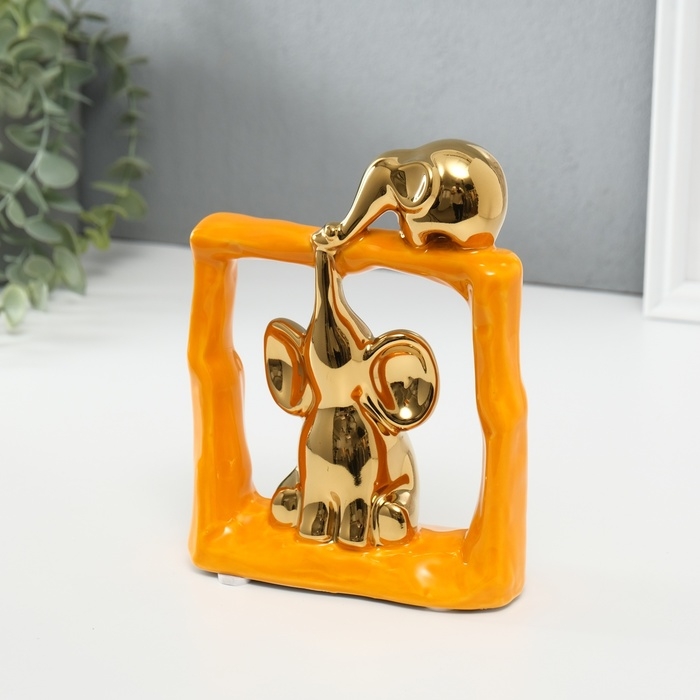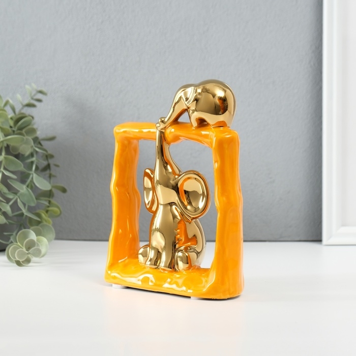 Сувенир керамика "Слонята - поддержка. Квадрат" оранжевый с золотом 6х13,5х17,5 см