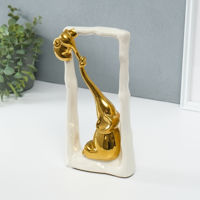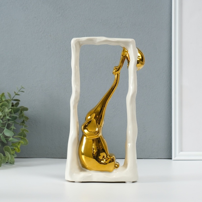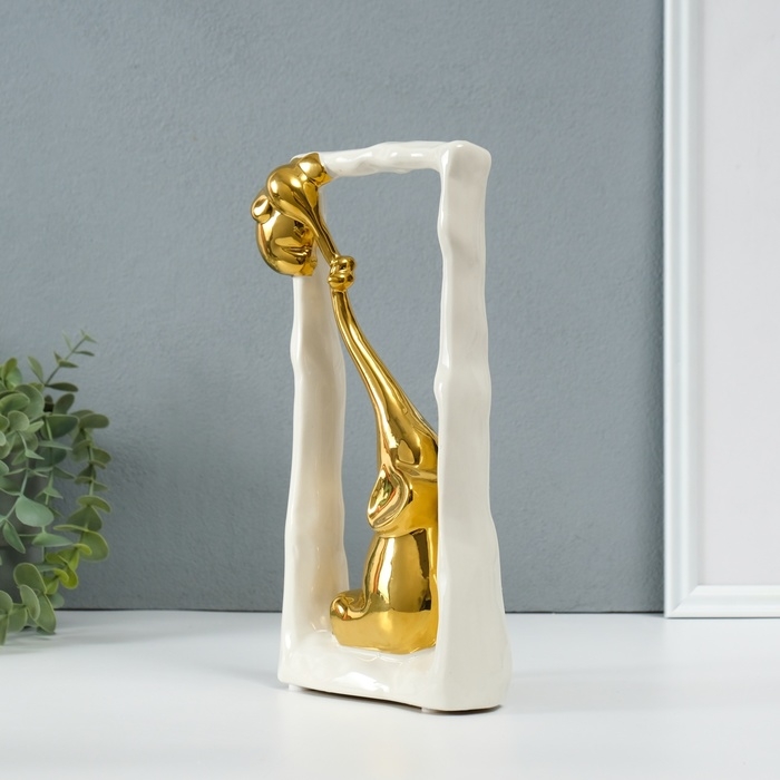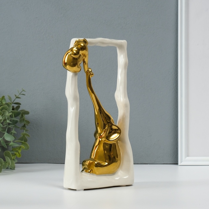 Сувенир керамика "Слон со слонёнком - опора. Прямоугольник" белый с золотом 5,5х13,5х26 см 1032365