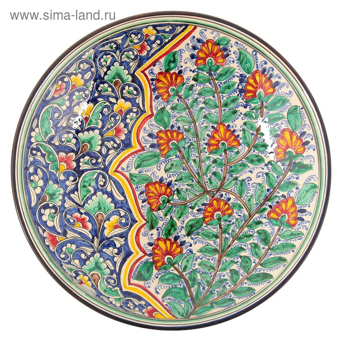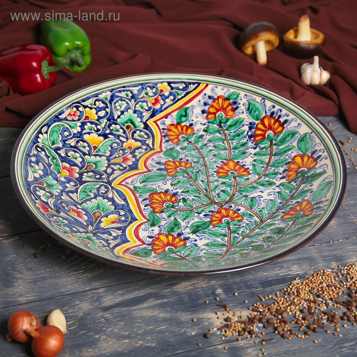 Ляган Риштанская Керамика "Цветы", 42 см, синий