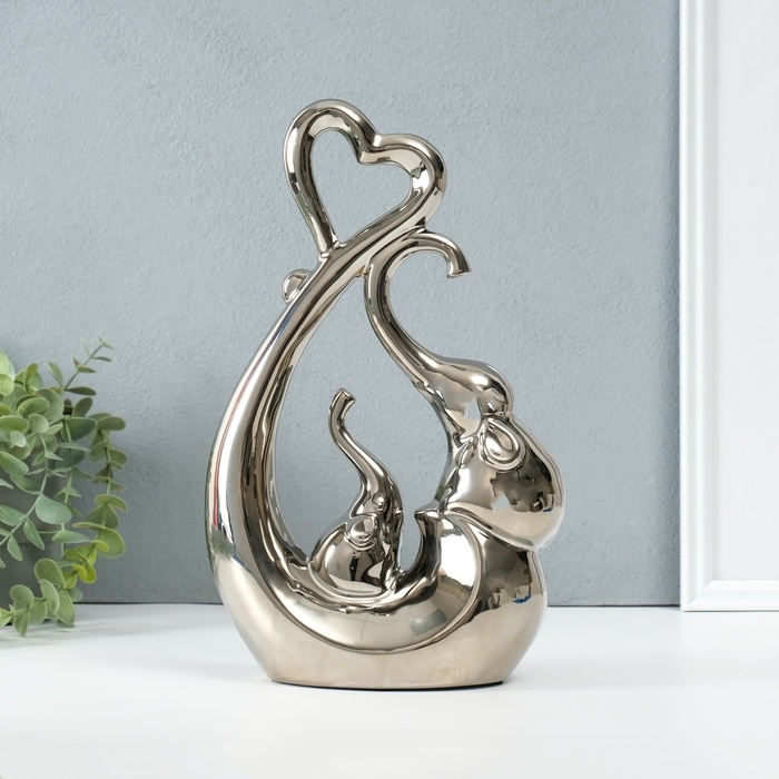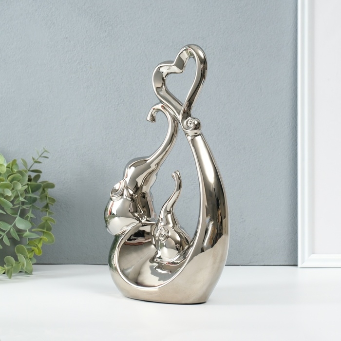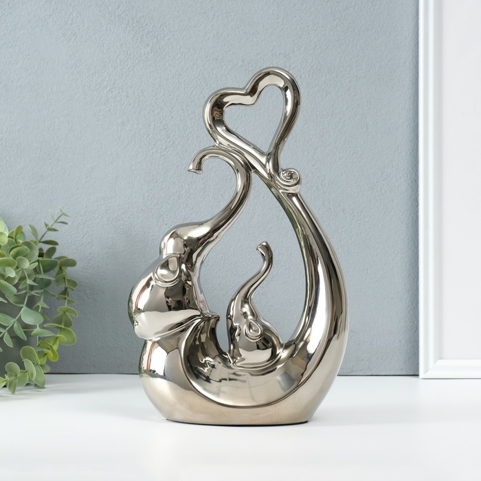 Сувенир керамика "Слоники с сердцем. Абстракция" серебро 8,5х18,5х29,3см