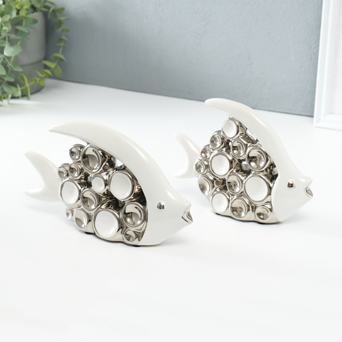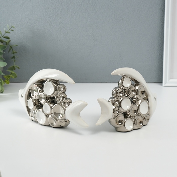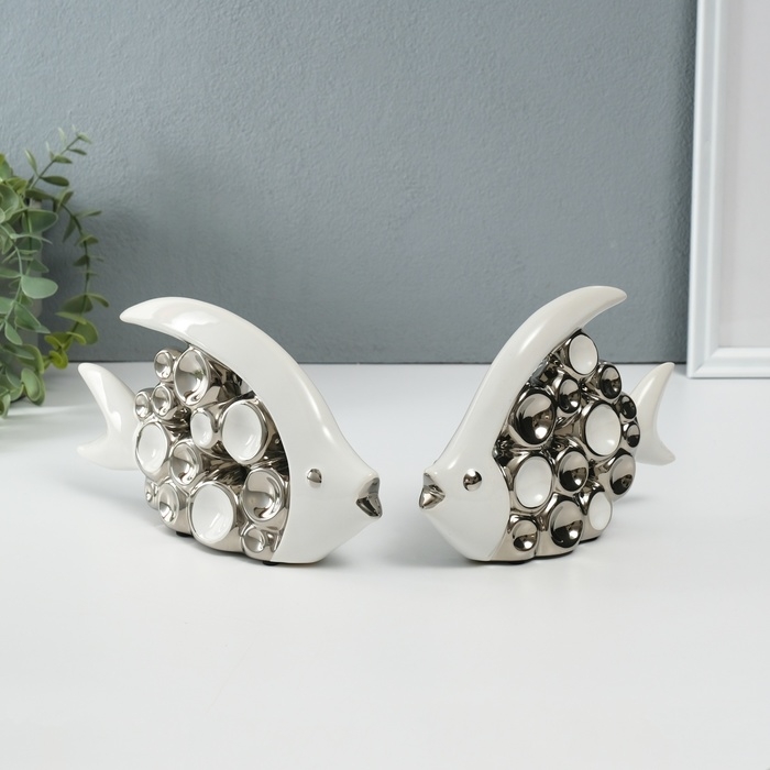 Сувенир керамика "Две рыбки - пузырьки" белый с серебром набор 2 шт 4,8х22х12 4,8х17,5х13 см 10323