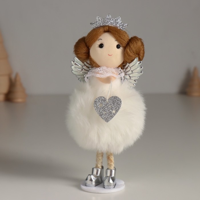 Кукла интерьерная "Принцесса-ангел в пушистом платье с сердечком" 7х7х16 см