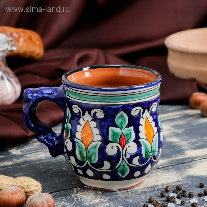 Кружка Риштанская Керамика "Цветы", 330 мл, синий