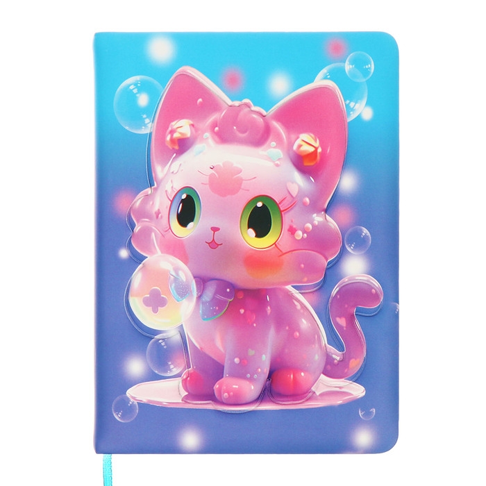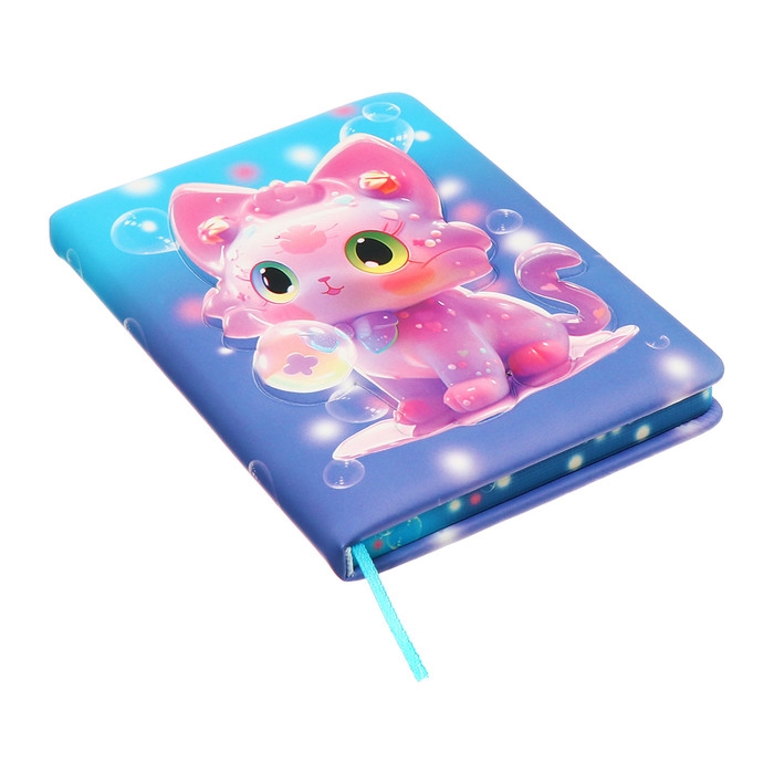 Записная книжка подарочная 96л,линия, цветной срез,обложка ПВХ 3D Кошка (17,7х12,4см)