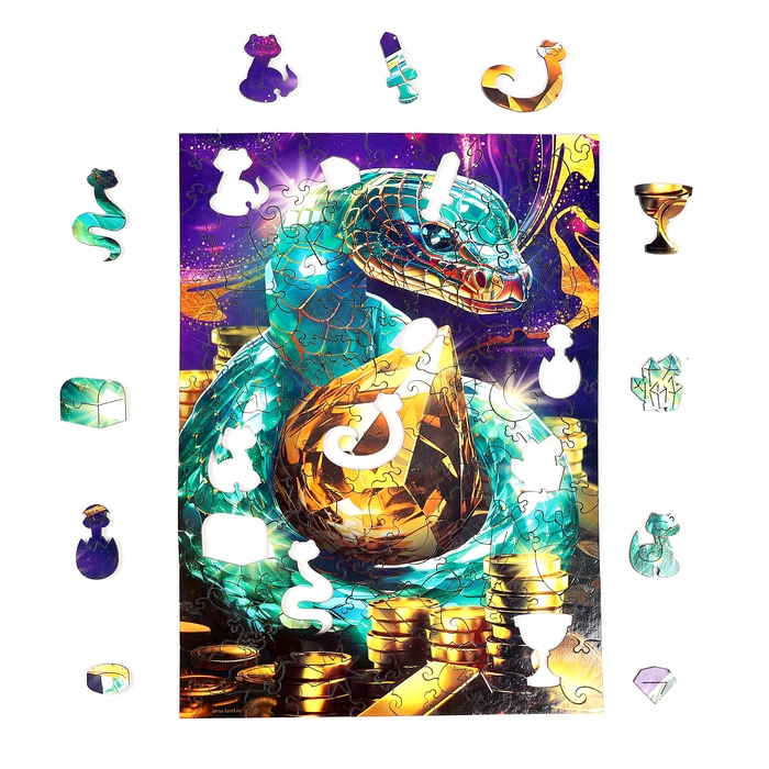 Пазлы фигурные деревянные на новый год «Змея. Сокровищница», 148 элементов, символ года 2025