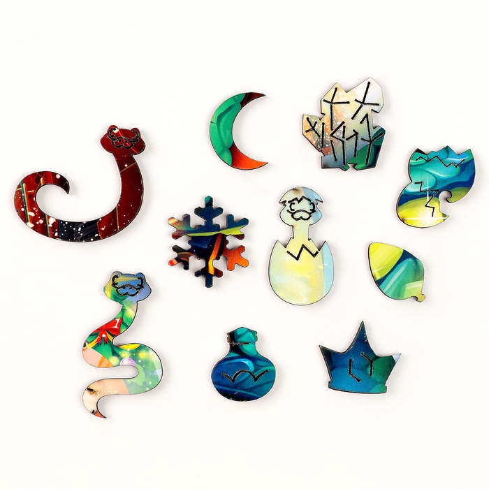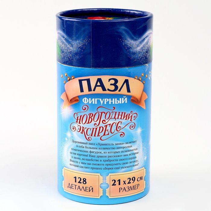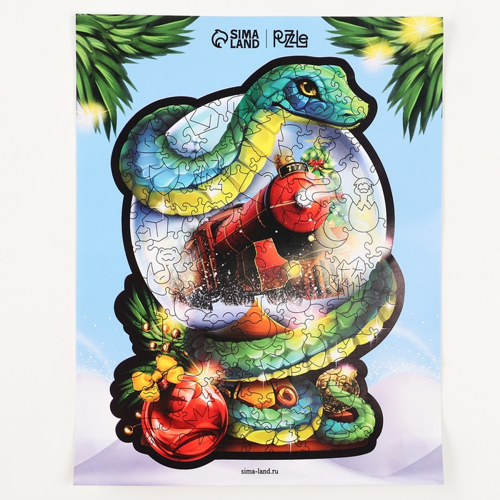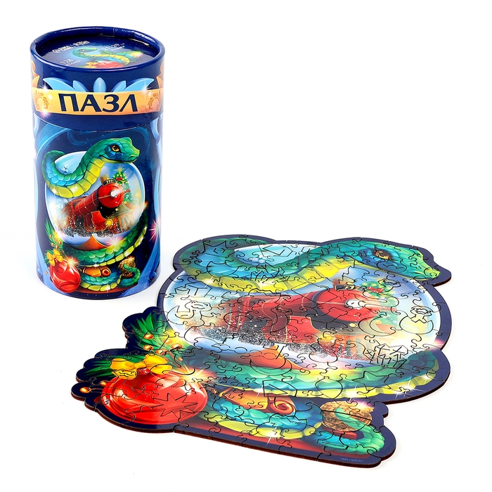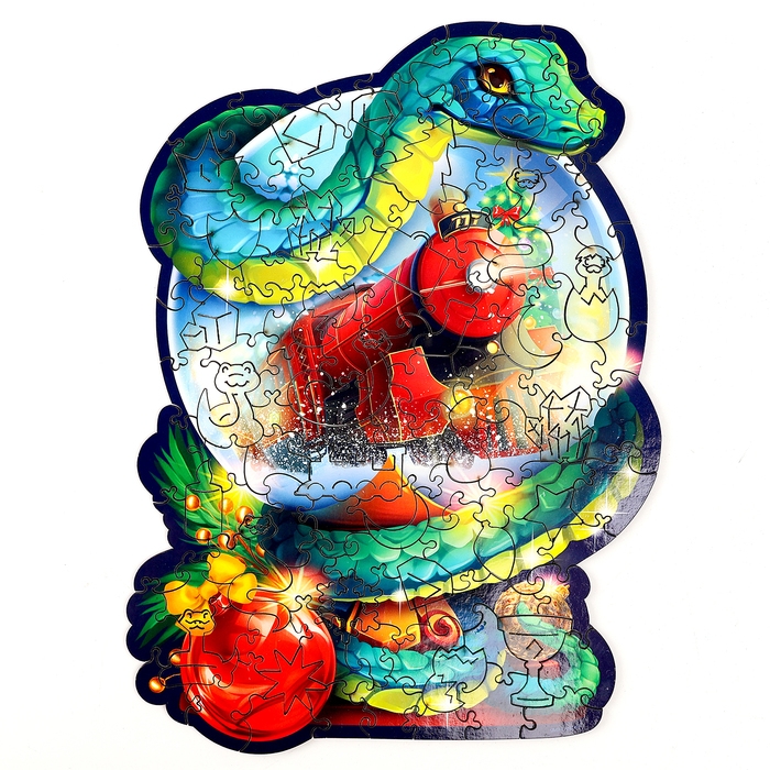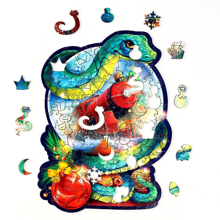 Пазлы фигурные деревянные на новый год «Змея на шаре. Новогодний экспресс», 128 элементов, символ года 2025