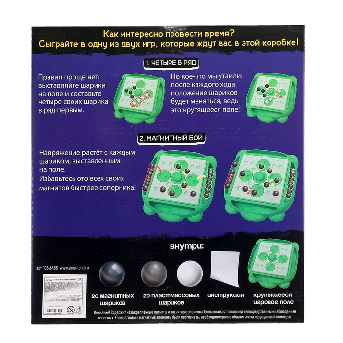 Настольная игра «Магнитная битва + 4 в ряд», 1-2 игрока, 3+
