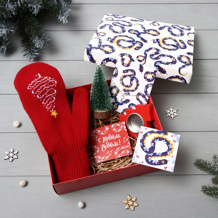 Подарочный набор "Новогодний" варежки р-р 19 и акс (4 предм)