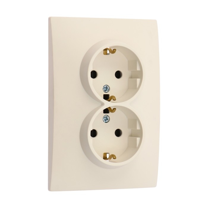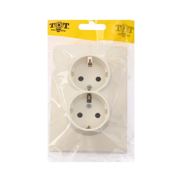Розетка двухместная TOT Elegant, 16 А, скрытая, с з/к, бежевая