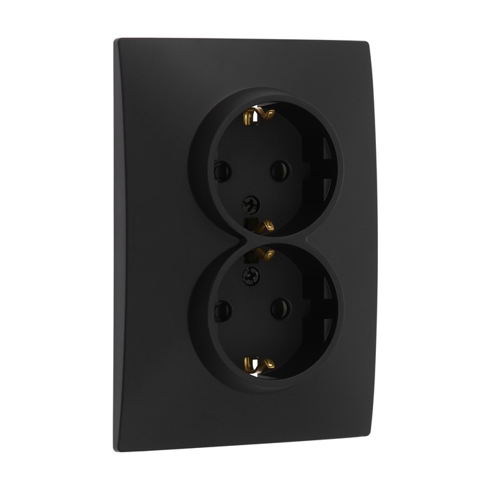 Розетка двухместная TOT Elegant, 16 А, скрытая, с з/к, черная