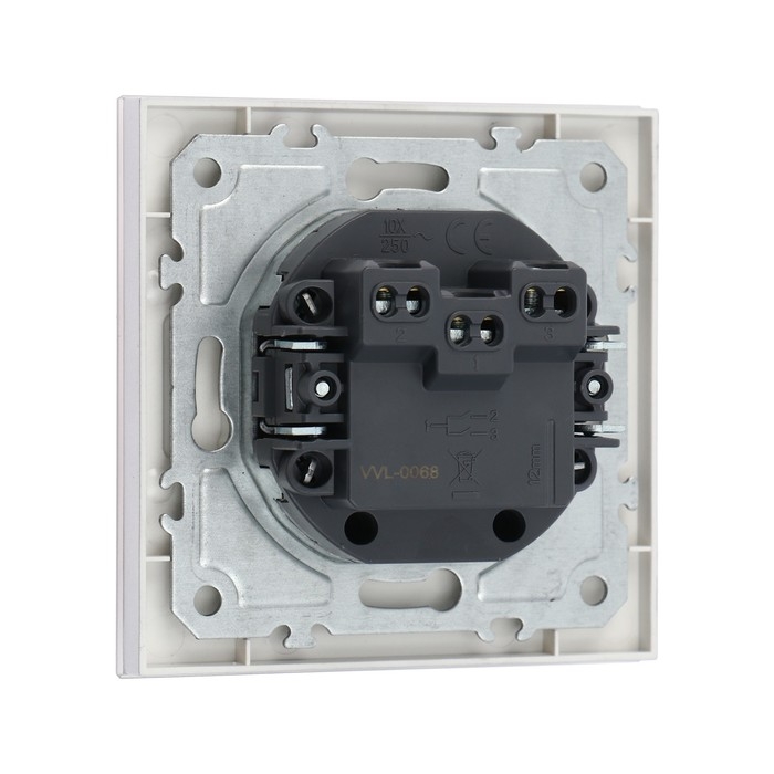 Выключатель TOT Matte Glass, 10 А, 2 кл., скрытый, стекло, серебристый