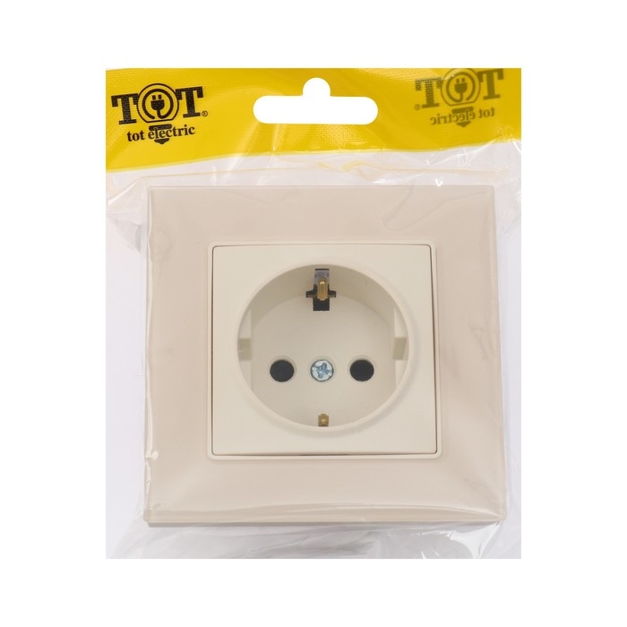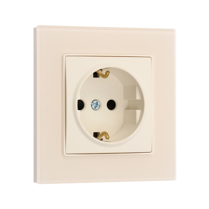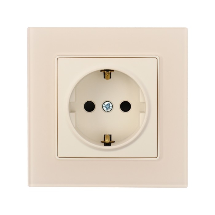 Розетка одноместная TOT Matte Glass, 16 А, скрытая, с з/к, стекло, бежевая