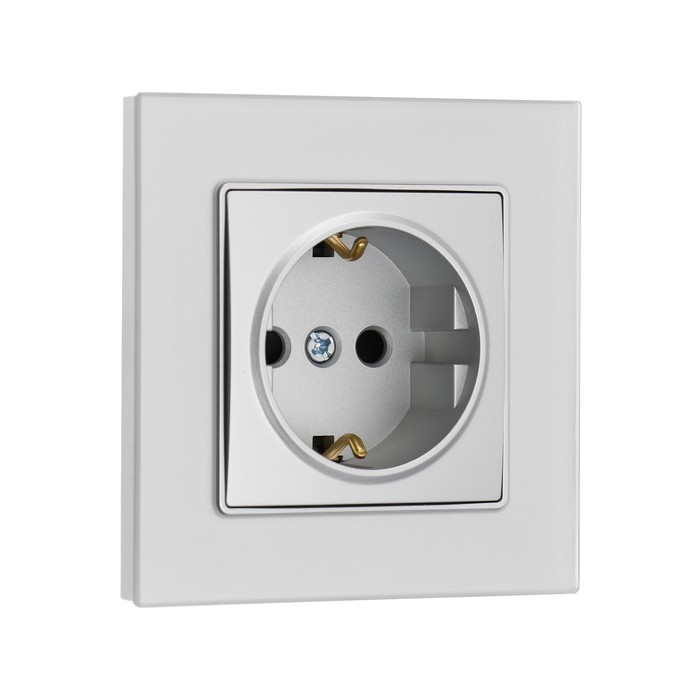 Розетка одноместная TOT Matte Glass, 16 А, скрытая, с з/к, стекло, серебристая