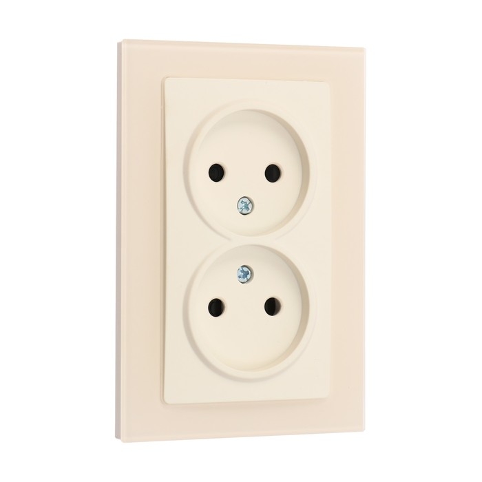 Розетка двухместная TOT Matte Glass, 10 А, скрытая, без з/к, стекло, бежевая