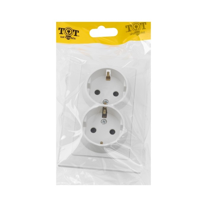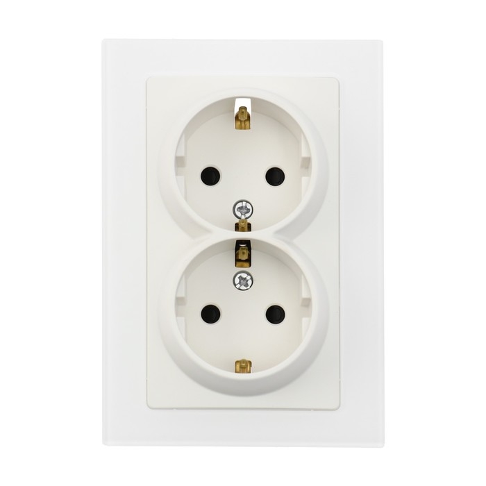 Розетка двухместная TOT Matte Glass, 16 А, скрытая, с з/к, стекло, белая