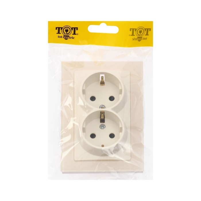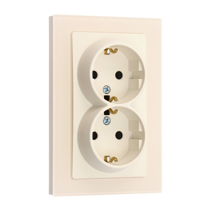 Розетка двухместная TOT Matte Glass, 16 А, скрытая, с з/к, стекло, бежевая