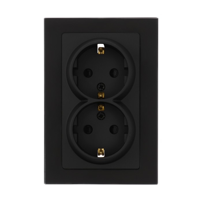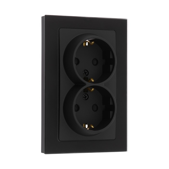 Розетка двухместная TOT Matte Glass, 16 А, скрытая, с з/к, стекло, черная
