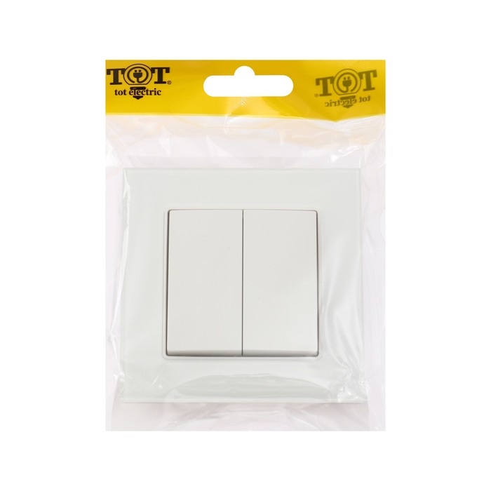 Выключатель TOT Glossy Glass, 10 А, 2 клавиши, скрытый, стекло, белый