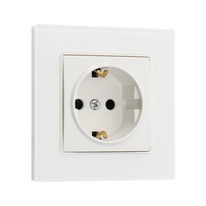 Розетка одноместная TOT Glossy Glass, 16 А, скрытая, с з/к, стекло, белая
