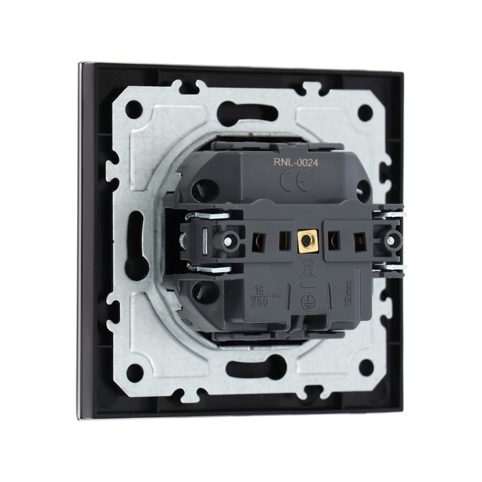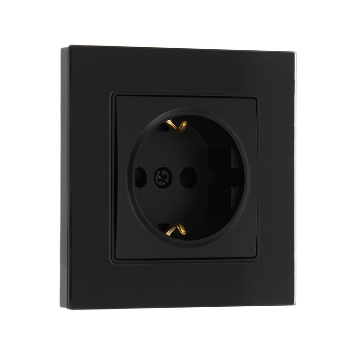 Розетка одноместная TOT Glossy Glass, 16 А, скрытая, с з/к, стекло, черная