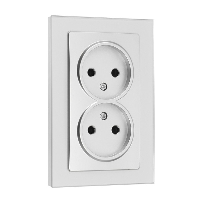 Розетка двухместная TOT Glossy Glass, 10 А, скрытая, без з/к, стекло, серебристая