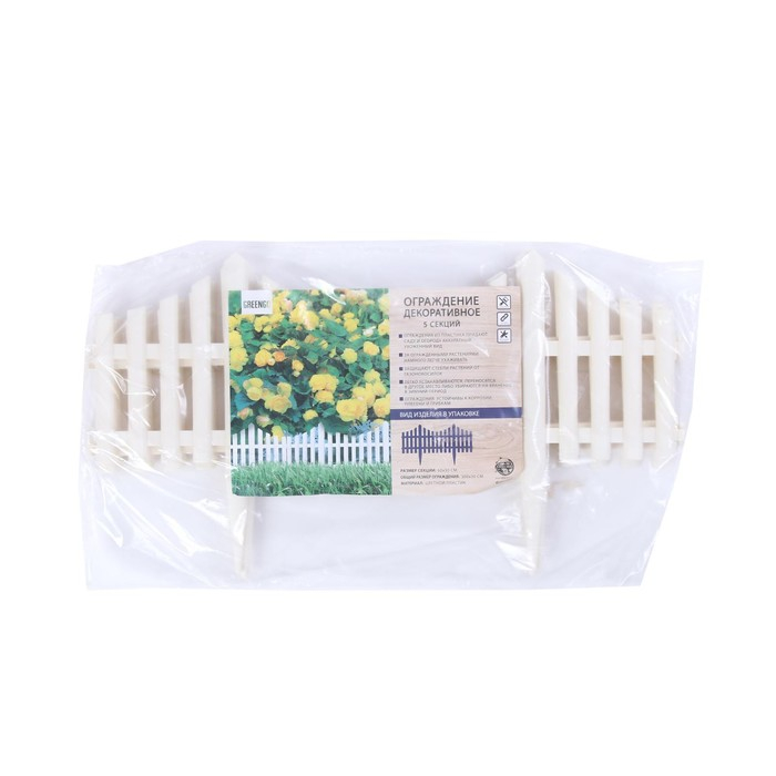 Ограждение декоративное, 30 × 300 см, 5 секций, пластик, белое, Greengo