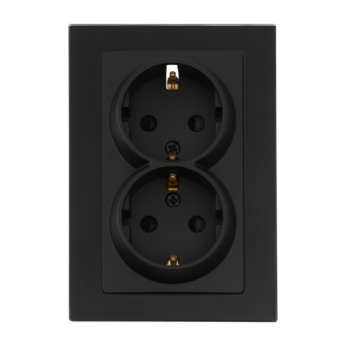 Розетка двухместная TOT Glossy Glass, 16 А, скрытая, с з/к, стекло, черная