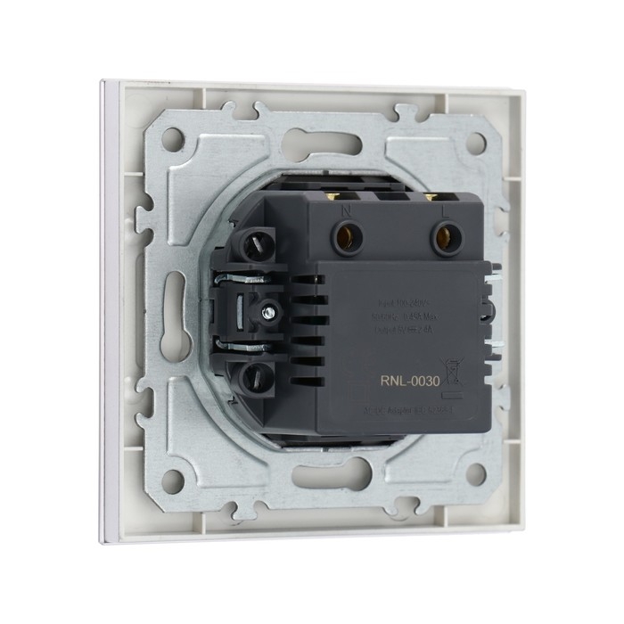 Розетка с USB-A + USB-C разъёмами, 2.1 A, 5В, TOT Glossy Glass, скрытая, стекло, серебристая 10439
