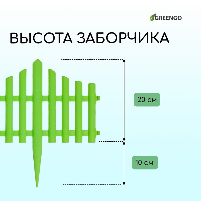Ограждение декоративное, 30 × 300 см, 5 секций, пластик, салатовое, Greengo