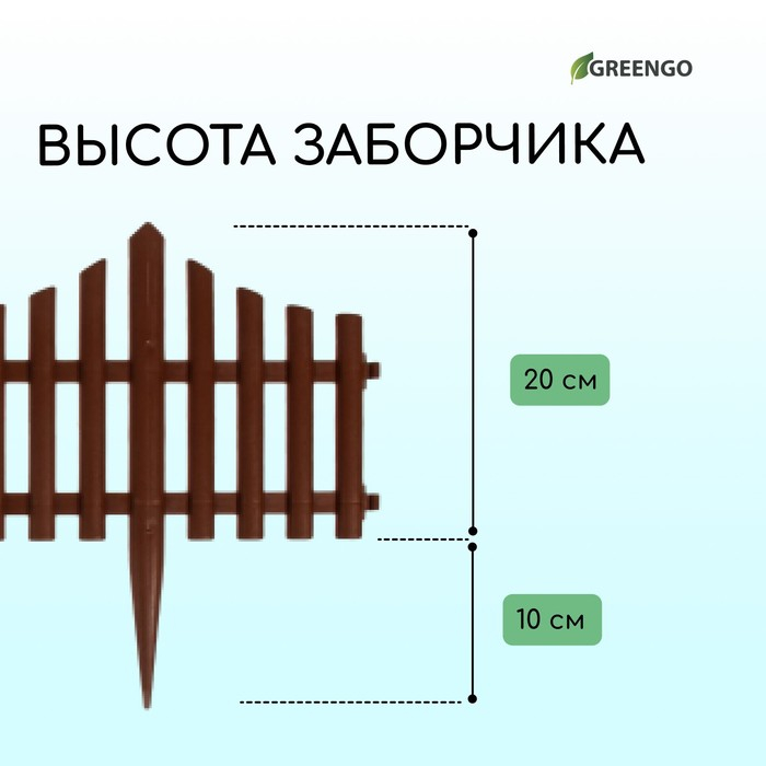 Ограждение декоративное, 30 × 300 см, 5 секций, пластик, коричневое, Greengo