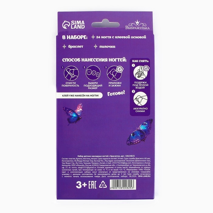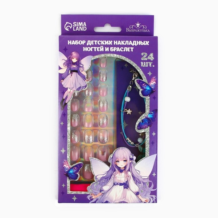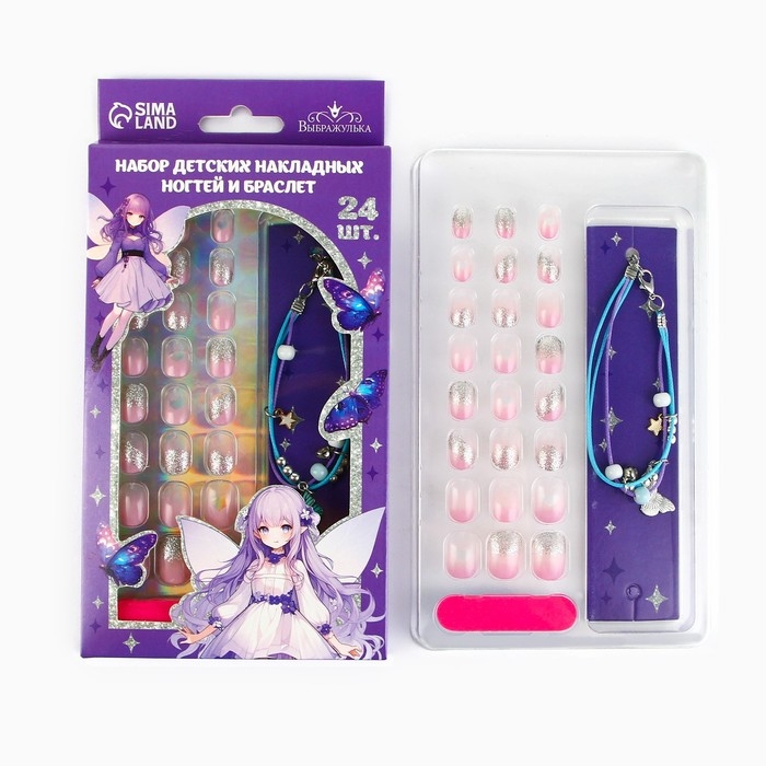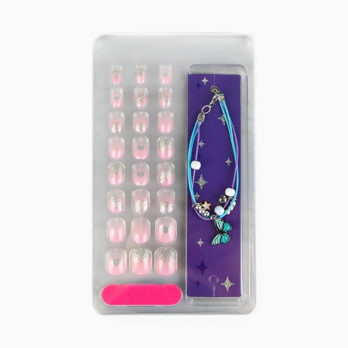 Детские накладные ногти «Милахи», 12 шт, набор с браслетом и заколками