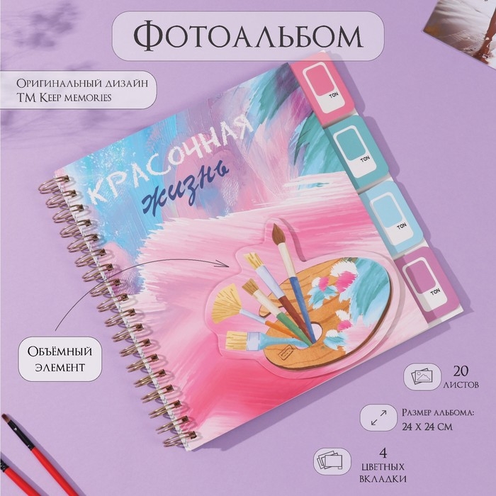 Фотоальбом на спирали 20 листов "Палитра" объёмный элемент + 4 вкладки 24х24 см