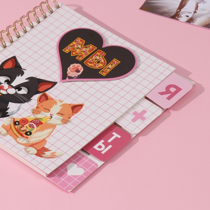 Фотоальбом на спирали 20 листов "Котики с пиццей" объёмный элемент + 4 вкладки 24х24 см