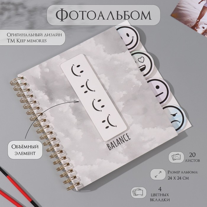 Фотоальбом на спирали 20 листов "Облака" объёмный элемент + 4 вкладки 24х24 см