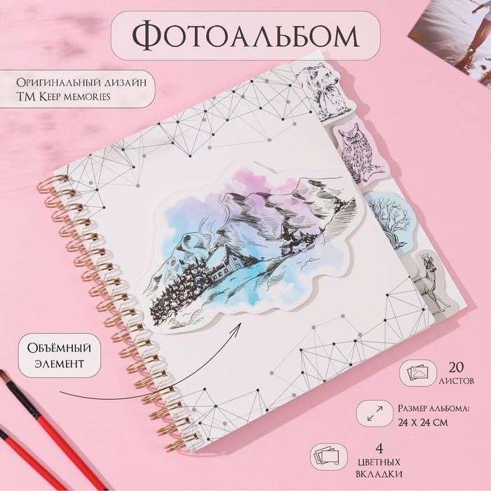 Фотоальбом на спирали 20 листов "Контур. Природа" объёмный элемент + 4 вкладки 24х24 см