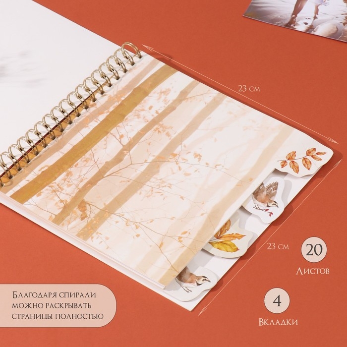 Фотоальбом на спирали 20 листов "Котики в окне" объёмный элемент + 4 вкладки 24х24 см