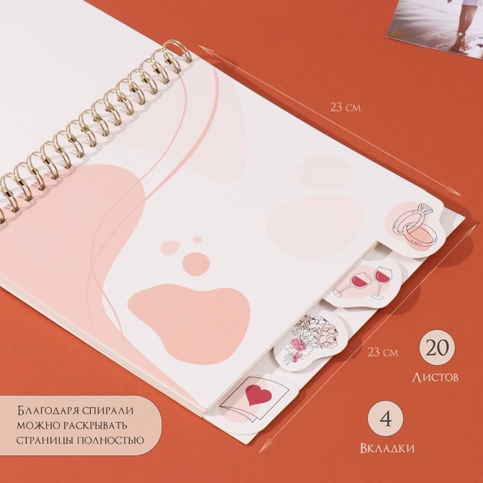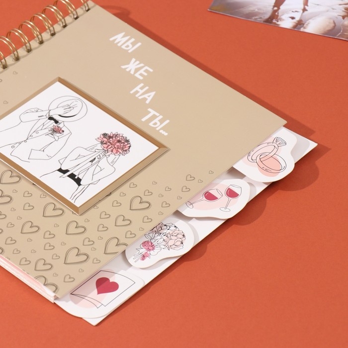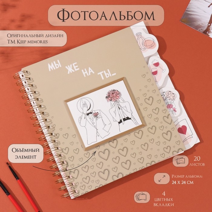 Фотоальбом на спирали 20 листов "Мы женаты" объёмный элемент + 4 вкладки 24х24 см
