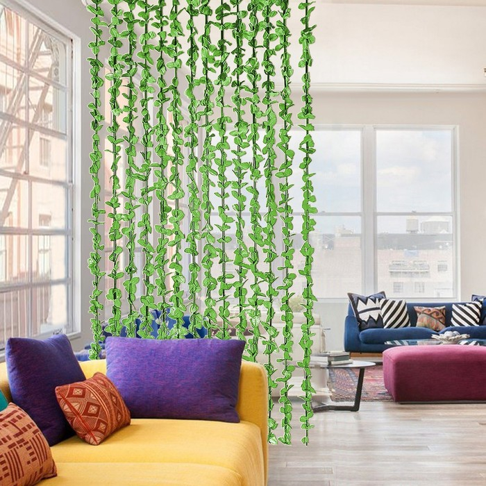 Занавеска декоративная «Листики», 90×164 см, 12 нитей, цвет зелёный