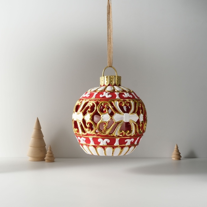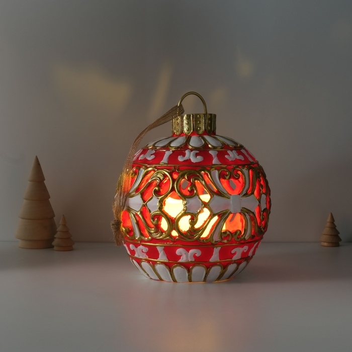 Сувенир полистоун свет "Новогодний шар красный с белыми узорами" 16,5х16,5х20 см