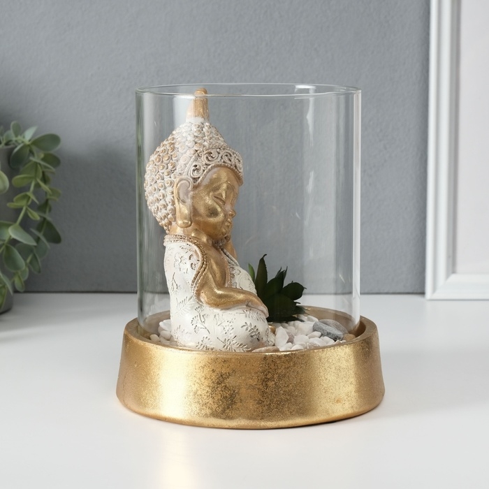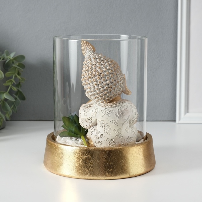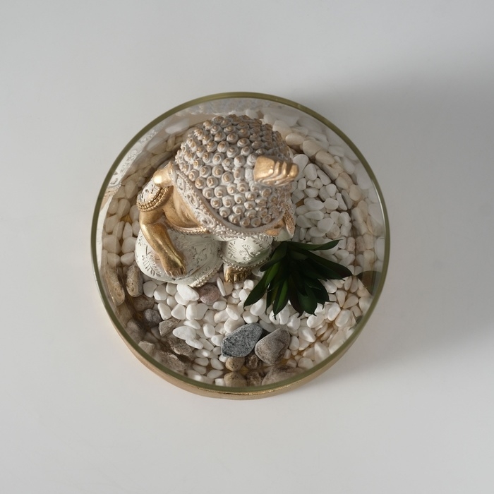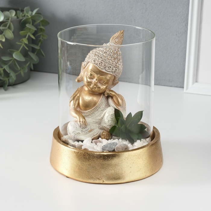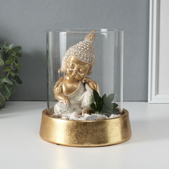 Сувенир полистоун, стекло "Маленький Будда в саду камней" 15,5х15,5х18 см