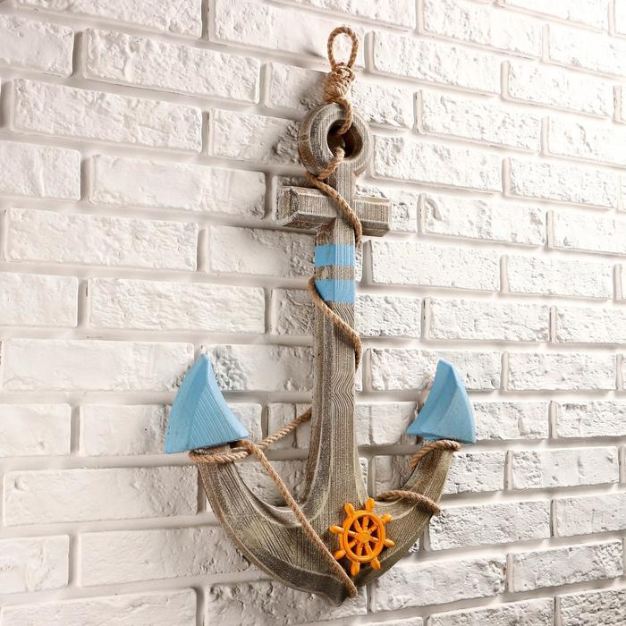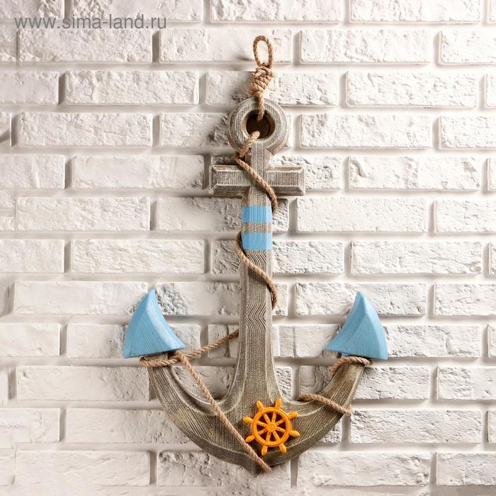 Якорь интерьерный с веревкой и штурвалом, 60*44см