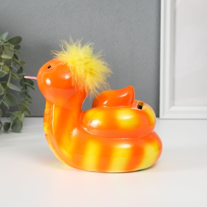 Копилка керамика "Рыжая змейка с пушистой причёской" 10,5х13,9х12,3 см