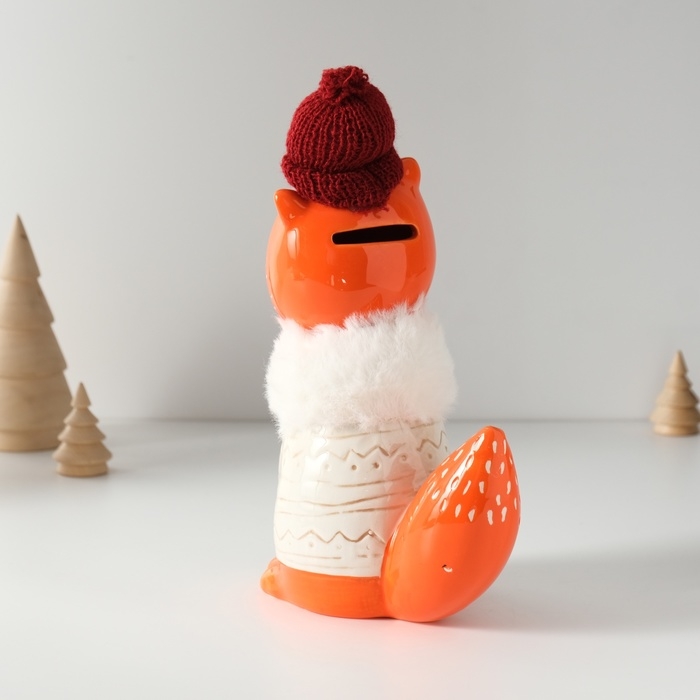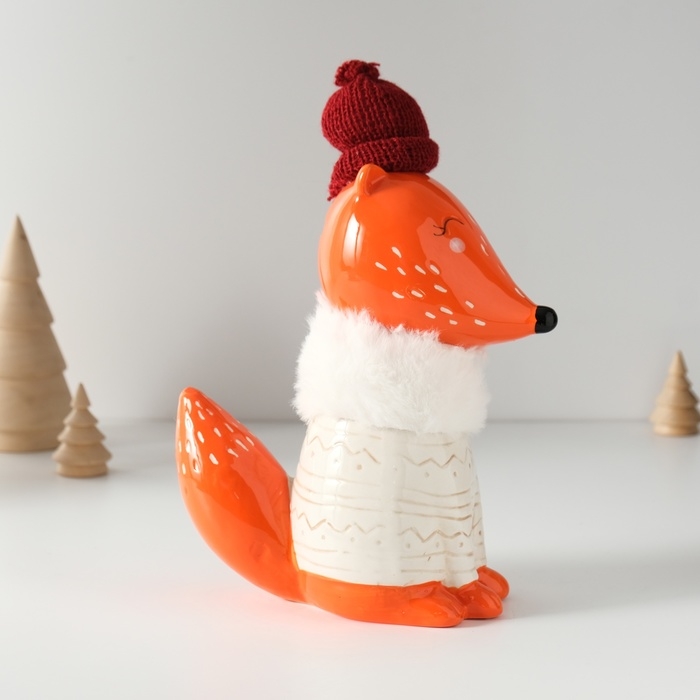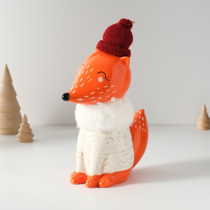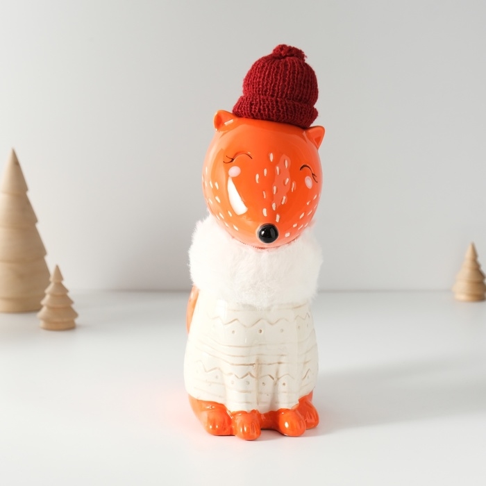Копилка керамика "Лисёнок в сером свитере и шапке" 7,8х15,7х25 см