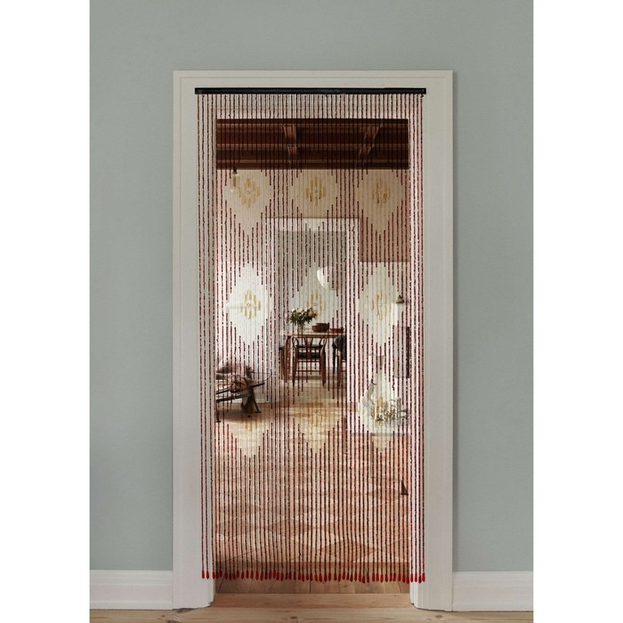 Занавеска декоративная деревянная, 90×190 см, 52 нити, цвет МИКС