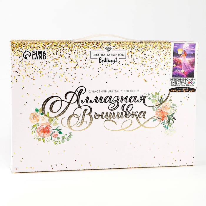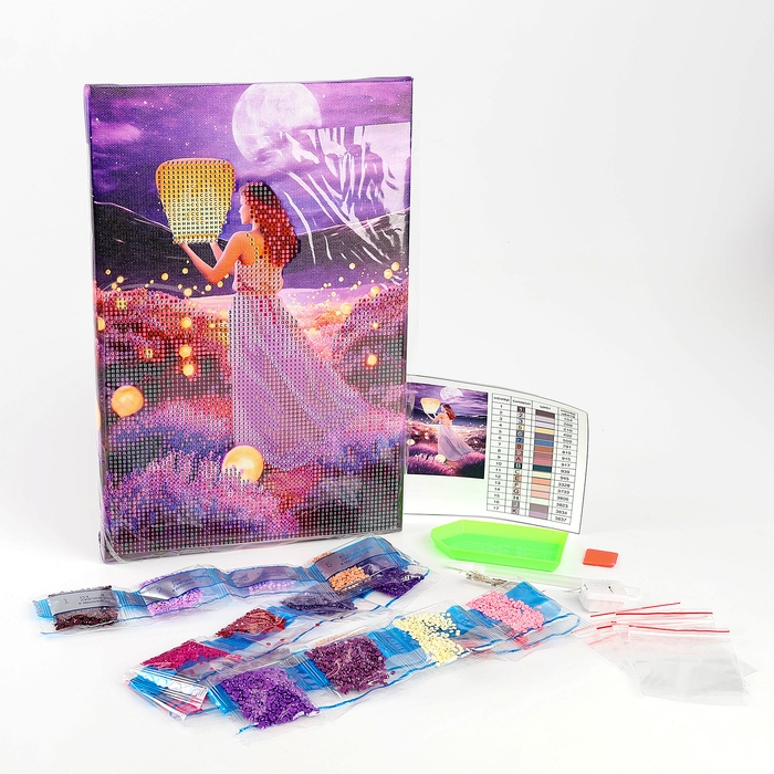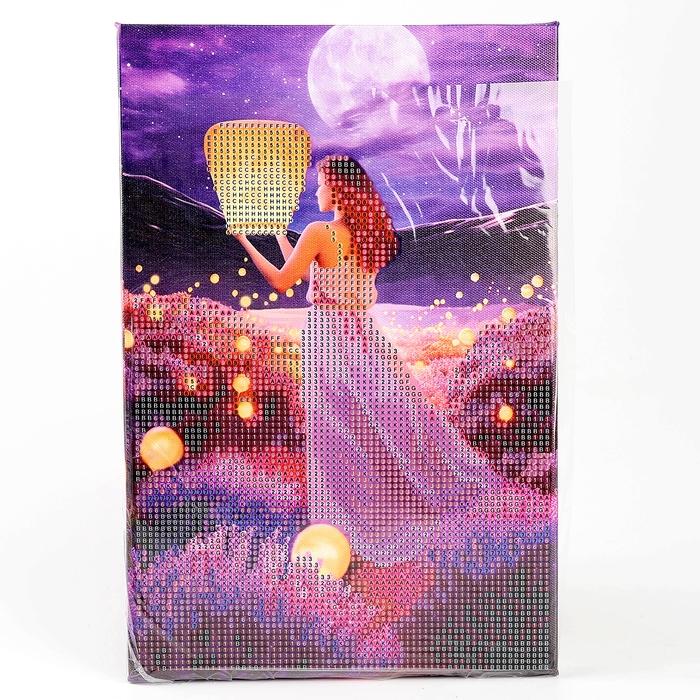 Алмазная мозаика с частичным заполнением на подрамнике «Небесные фонари», 20 х 30 см, с гирляндой