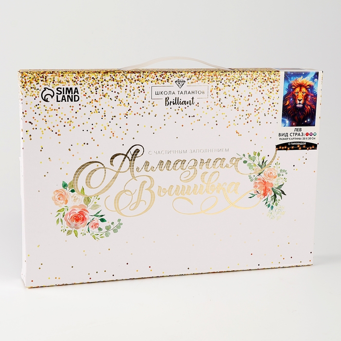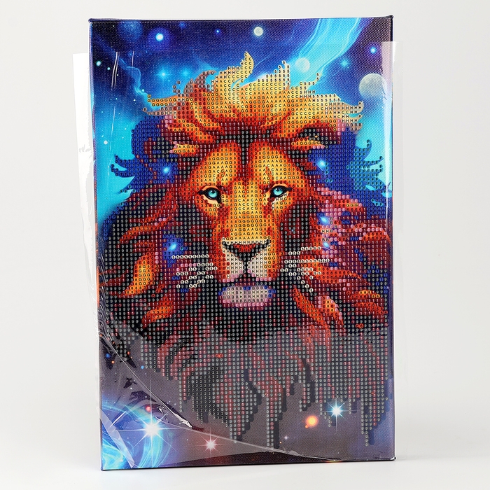 Алмазная мозаика с частичным заполнением на подрамнике «Лев», 20 х 30 см, с гирляндой