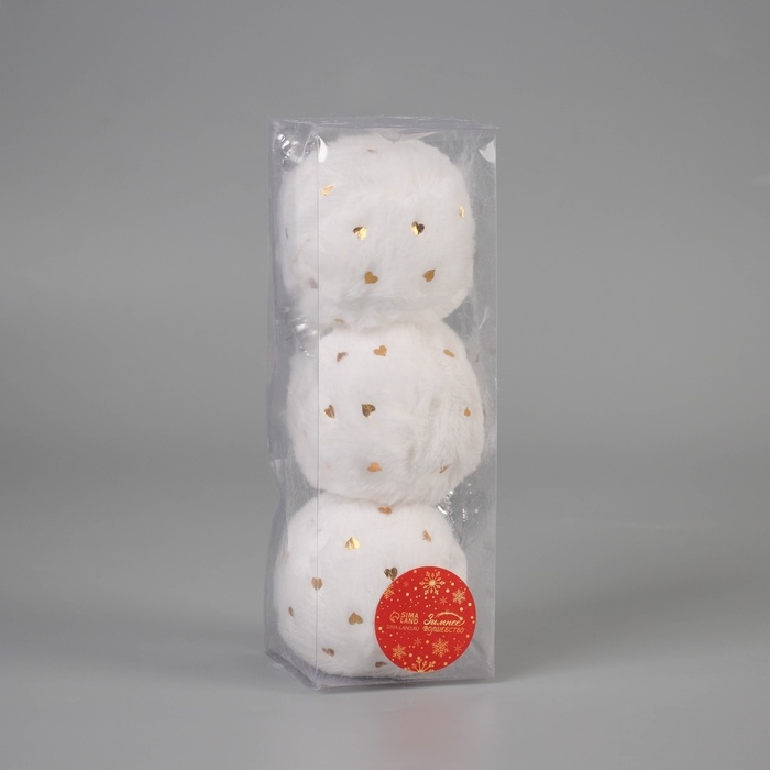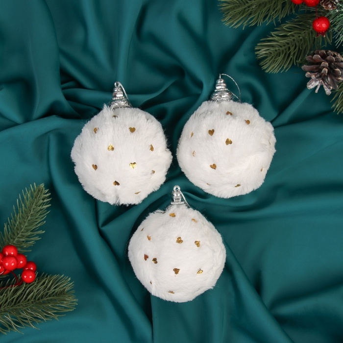 Набор шаров пластик d-8 см, 3 шт "Нежность" сердца, белый