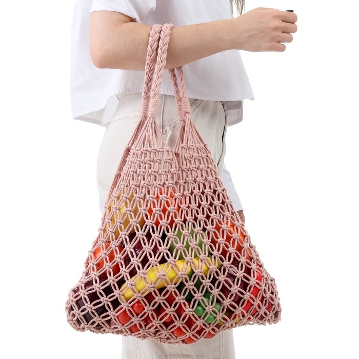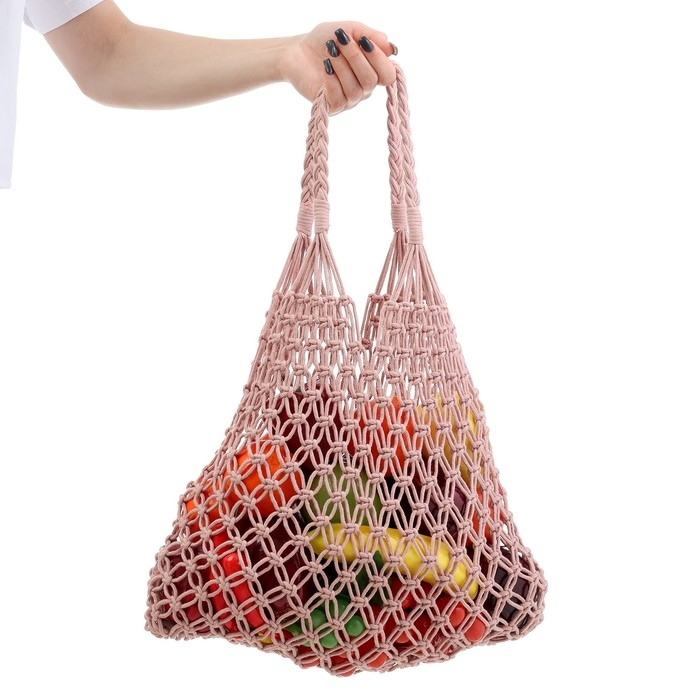 Авоська 35 х 48 см, ручка 14 см, клетка 3.5 см, персиковая
