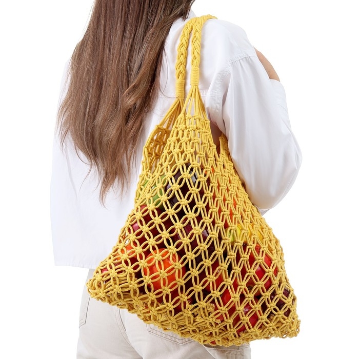 Авоська 35 х 48 см, ручка 14 см, клетка 3.5 см, желтая